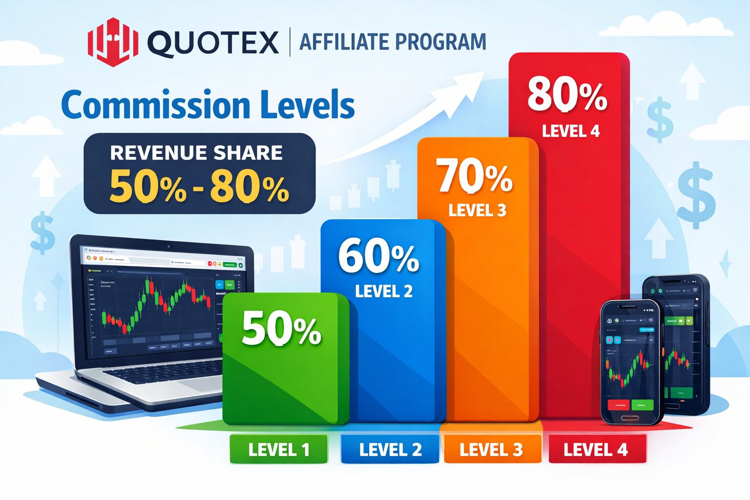 Quotex Affiliate Program Revenue Share Model पर काम करता है।